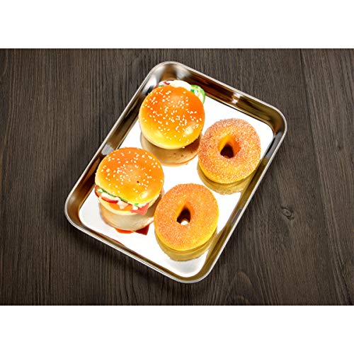 Perfect kitchen and baking performance stainless steel bakeware is the preferred choice by professional family bakeware around the world for its durability quality, extra strength and high-performance capabilities. We are proudly brings top quality stainless steel bakeware into the home baker’s kitchen. Baking delicious with your family has never been such easier. dimension: Length 9.06 x width 6.69 x Height 0.98 inch &nba; why you chose stainless steel baking sheets 1. Stainless steel is more healthier and non-toxic than aluminum. 2. Stainless steel is dishwasher-safe, but aluminum not. 3. Stainless steel is more easily clean-up even about hand-wash. 4. Stainless steel, food cook more evenly and less stick. why you choose Bastwe baking sheets? 1.【Safety material made of 430 stainless steel, without chemical coating or aluminum fillers, more reassuring. 2.【Durability】won’t out of shape and it can evenly heating in oven for its durability and high-performance capabilities, It is a great replacement of aluminum baking sheet. 3.【Easy clean】dishwasher safe, It can save your time and labor to enjoy your family time. 4.【Multiple use】can also use for make brownies, corn bread, cinnamon rolls, yeast rolls, sticky buns, etc. tip for less stick you can use a light spray or grease The pan with a little oil or butter to avoid food stick. notice: 1. Please use soft Cleaning Rag to clean the sheets for the beauty of its surface. 2. Please clean and dry The baking pan after using for its durability. 3. Make more delicious, have a good time. 4.Just click ADD to cart and buy tours today!