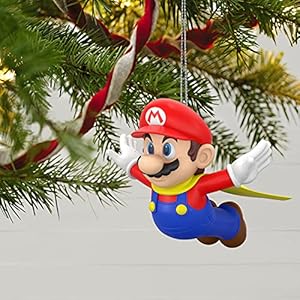 Soar into retro fun with this Mario Christmas tree ornament. Wearing his yellow cape, first introduced in “Super Mario World” for the Super NES console, Mario embodies high-flying adventures through Dinosaur Land in his quest to save Princess Toadstool from Bowser.