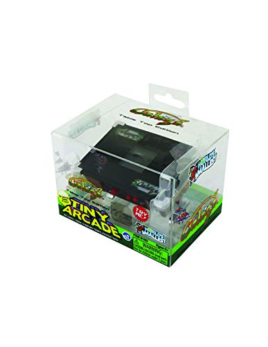 Tiny Arcade Galaga tabletop edition is the newest addition to the Tiny Arcade line, The world’s smallest full function, licensed retro video arcade games! Tiny Arcade tabletops are based on the “cocktail table” Style arcades that invaded restaurants and bars starting in the 1980S. With a screen size of 1inch and an overall table size measuring 4 x 3 x 2 inches, each Tiny Arcade tabletop edition is a working, miniature version of the original full-size tabletop arcade featuring complete, authentic gameplay, full color, hi-res screen, arcade game sounds, joystick, and two directional buttons, in a sleek, horizontal orientation.